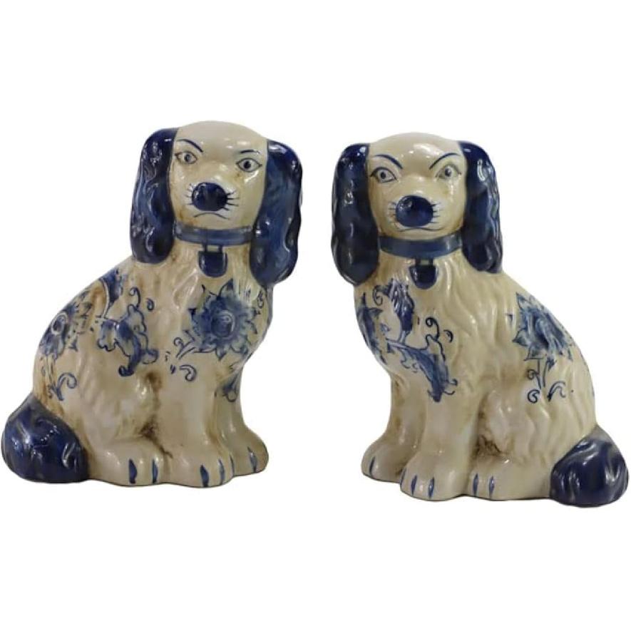 Handbemaltes blau-weißes Porzellan Hundepaar Kleine Figuren Heimdeko
