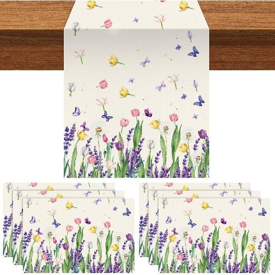 The lavender placemats and tulip table runner set saves your time looking for individual pieces and is economically friendly, serving up to 6 people at once