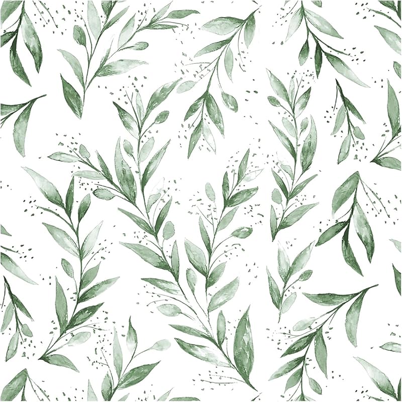 Peel and Stick Wallpaper 17.7 x590.5 Inch Olive Green Leaf WallpaperStick on Wallpaper for Bathroom Vinyl Removable Wallpaper Self Adhesive Wallpaper