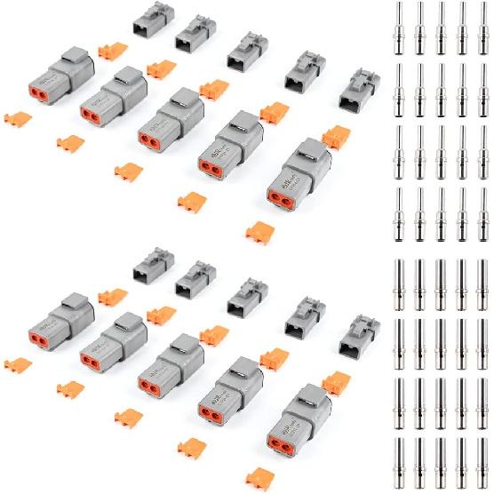 JRready ST6285 Deutsch DTP Connector Kit Size 12 Waterproof 25 Amp - 10 Sets 2 Pin Connector Kit with 20 Pairs 16-12 AWG Solid Contacts Male and