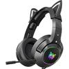Blue Gaming Headset with Removable Cat Ears, Compatible with PC PS4 PS5 Xbox One(Adapter Not Included) Mobile Phones, with Surround Sound, RGB