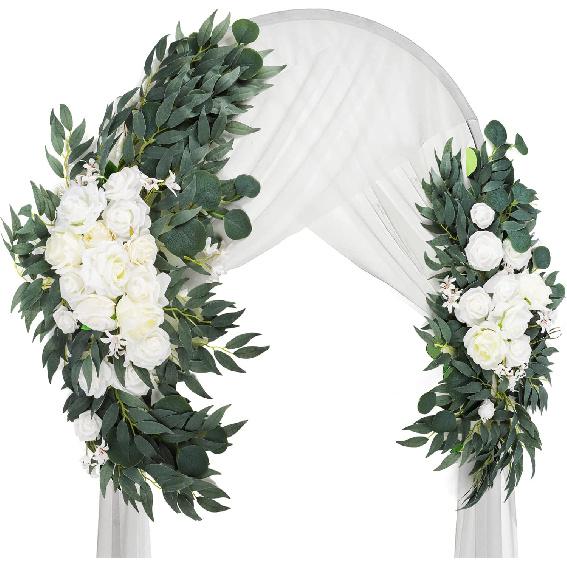 2 Pack Artificial Wedding Arch Flowers, 28”/20” Floral Swag Arrangement Set, Wedding Welcome Signs Floral Decorations Kit for Ceremony Reception,
