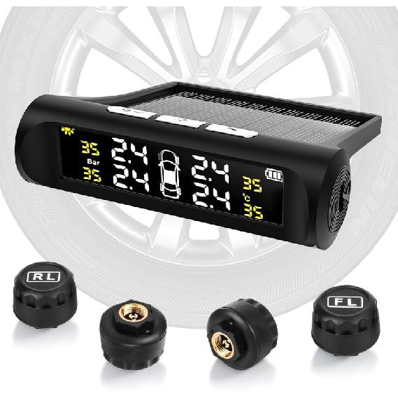 Tire Pressure Monitoring System, TPMS for RV and Trailer, Solar Powered TPMS with LCD Display, 4 Sensors, Real-Time Pressure and Temperature