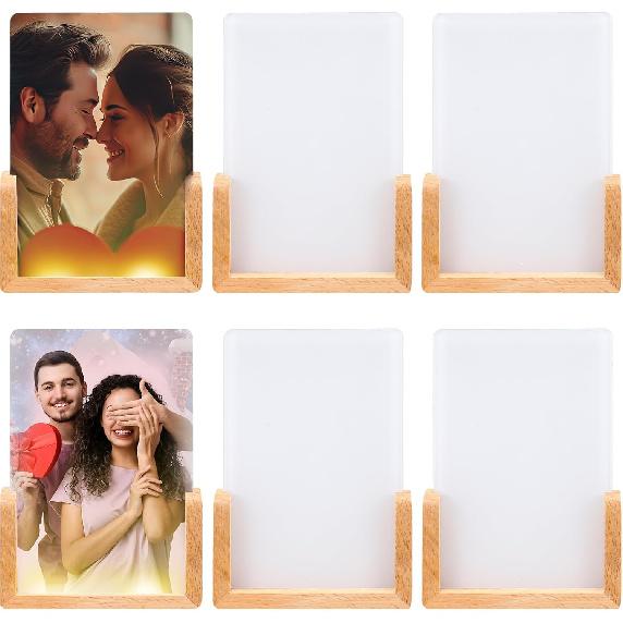 Meets Your Needs: every package includes 6 sublimation photo frames with wood base and a warm colored LED light powered by USB interface, offering you enough frame to display multiple heat transfer printed photos, whether you want to personalize a landscape or portrait or make a simple photo display, our package caters to most of your needs and more