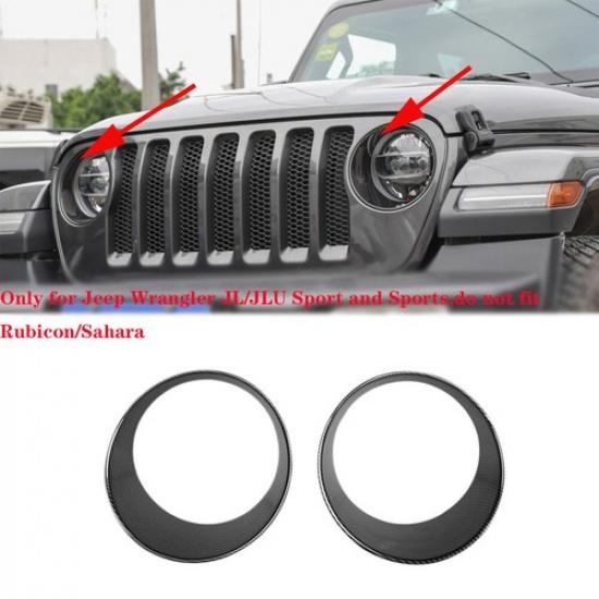 2*Carbon Fiber ABS Front Headlight Bezel Covers Trim for 2018 Jeep wrangler JL<