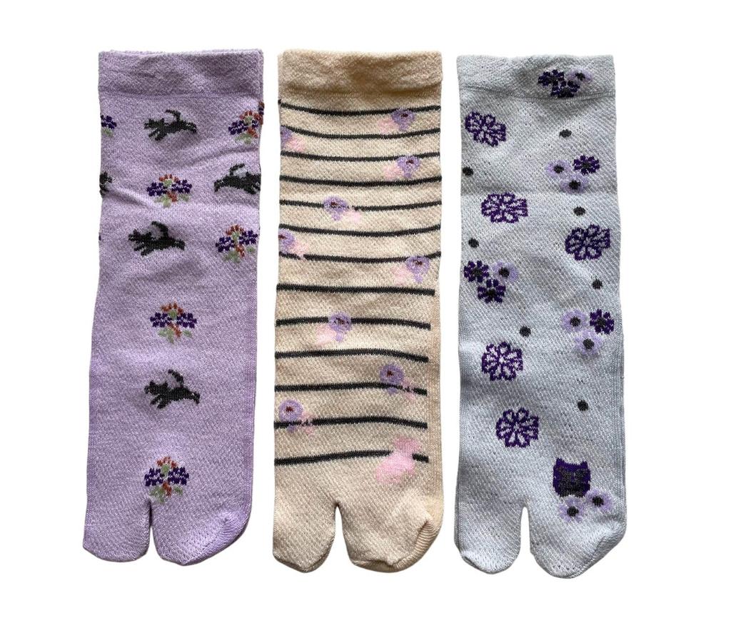 Mode Select Tabi Japanese 3 Sizes Cotton Perfect for Kimono and Set of your Women's Socks, Pattern, Pairs, 22-24cm, Blend, Breathable, Yukata, 3-Pair