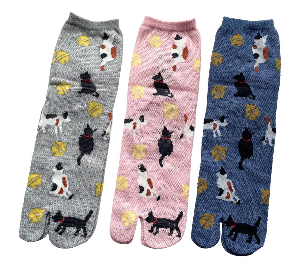Mode Select Tabi Mesh Katze Japanische Größen 3er Set P11 Damen Japanische Socken, Strick, Druck, Muster, 22-25cm, (Verfügbare Farben)