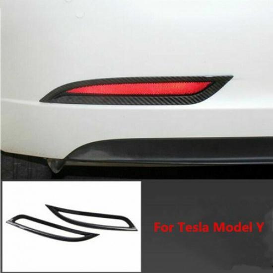 For Tesla Model Y 2020-2022 2PCS Carbon Fiber Rear Fog Lamp Light Cover Trim