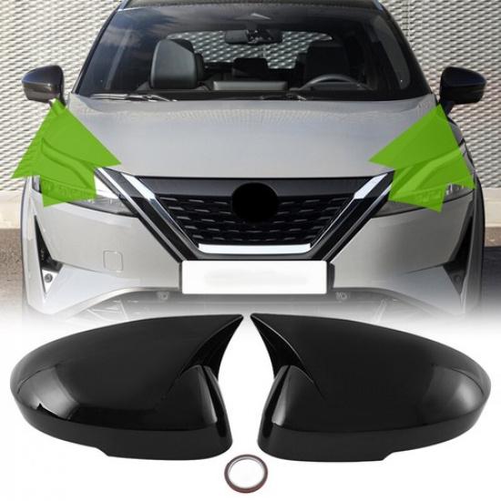 Fits Nissan Rogue 2021-2024 Gloss Black Side Rearview Door Wing Mirror Cover Cap