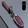 Zinc Alloy Leather Car Remote Key Fob Case Cover Bag For Tesla Model X 2016-2020