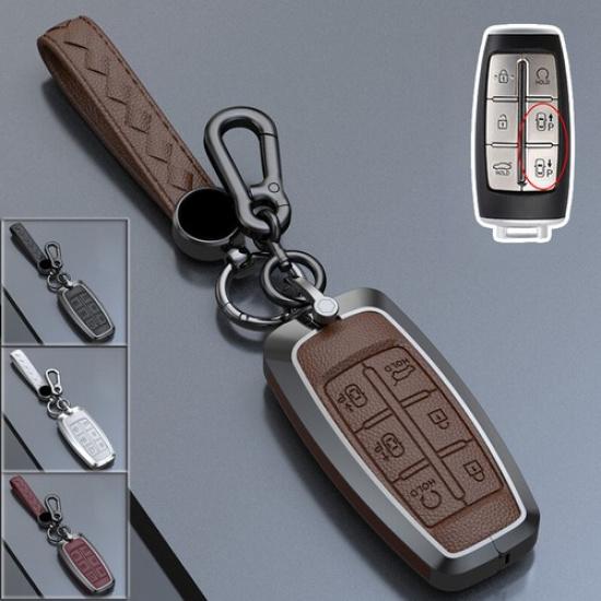 Zinc Alloy Leather Car Key Fob Case Cover For Genesis GV70 GV80 G70 G80 2020-22