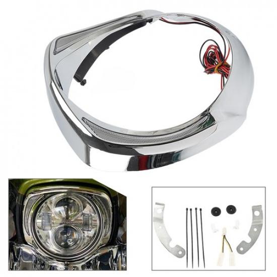LED Headlight Bezel Visor Trim Ring For Harley Touring 2014+