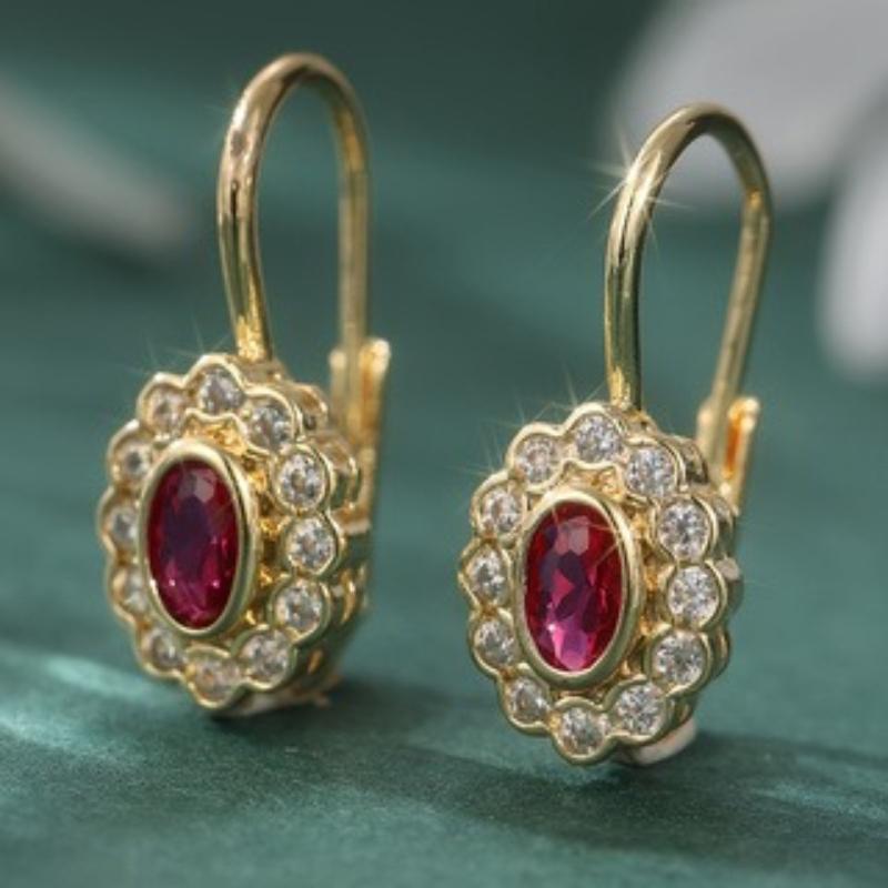 Vintage Luxus Rote Farbe Inlay Zirkon Damen Anhänger Ohrringe, Exquisite und fähige Hochzeitsbankett Schmuck Geschenke