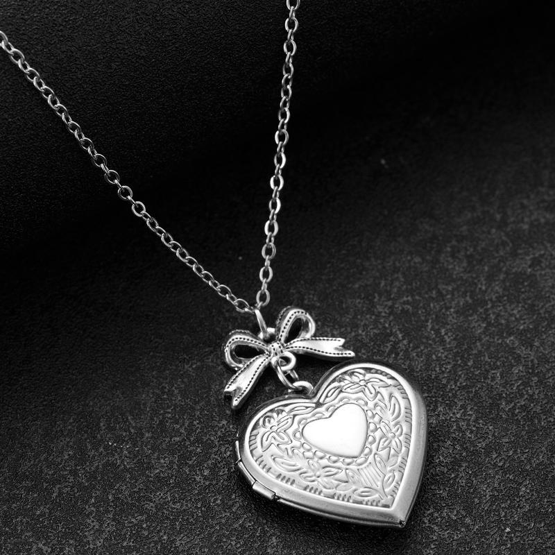 Personalisierte Punk-Stil geschnitztes Muster Schleife Liebe Anhänger Halskette, Geeignet für Damen Trend Accessoires Schmuck