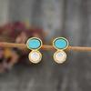 Vintage Goldfarbene Blaue Steine Imitation Perlen Ohrstecker Bohemian Metall Ohrstecker für Damen Schmuck