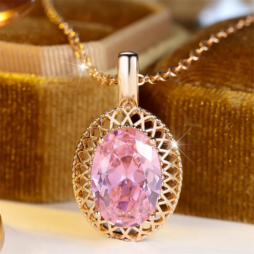 Big Oval Stone Pendant Elegant Pink Crystal Zircon Necklaces for Women Vintage Gold Color Chain Necklace Wedding Jewelry Gifts