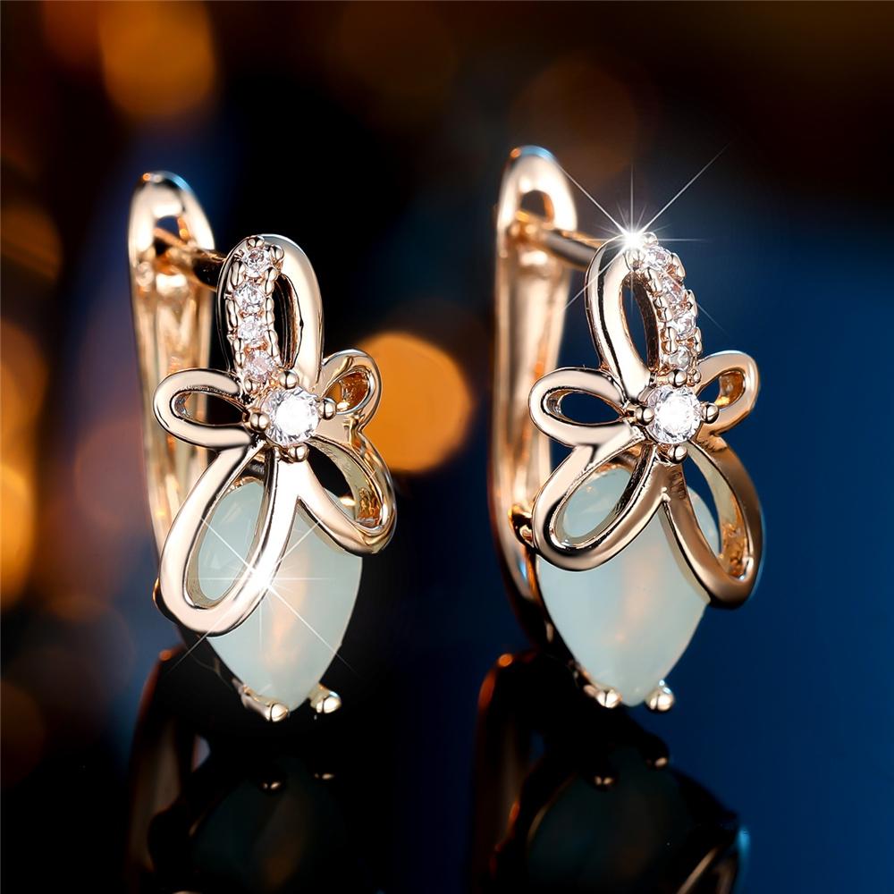 Charme Ohrringe mit weißem Zirkonstein und Blumen-Creolen Luxus Goldfarbe Hochzeits Schmuck für Damen