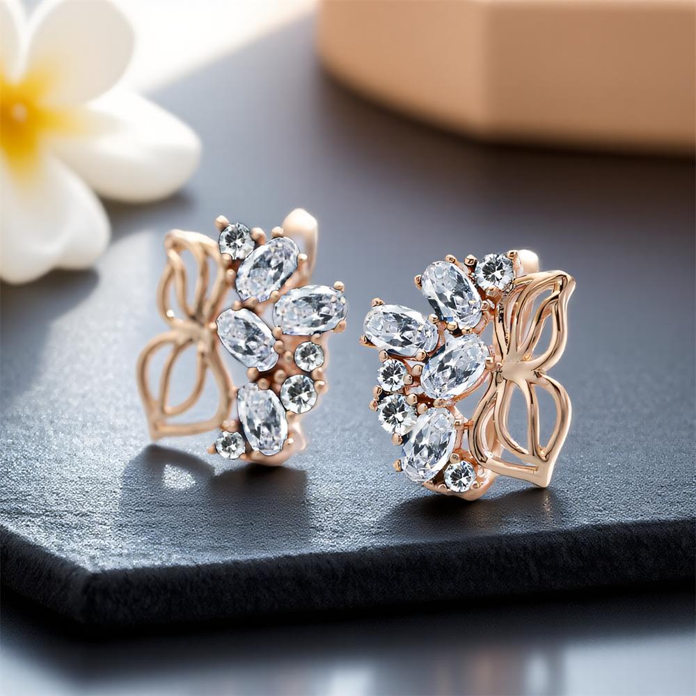 Weiße Zirkon Luxus Kristall Ovaler Stein Blume Creolen Ohrringe Für Frauen Vintage Goldfarbe Ohrverschluss Hochzeits Schmuck Party Geschenke