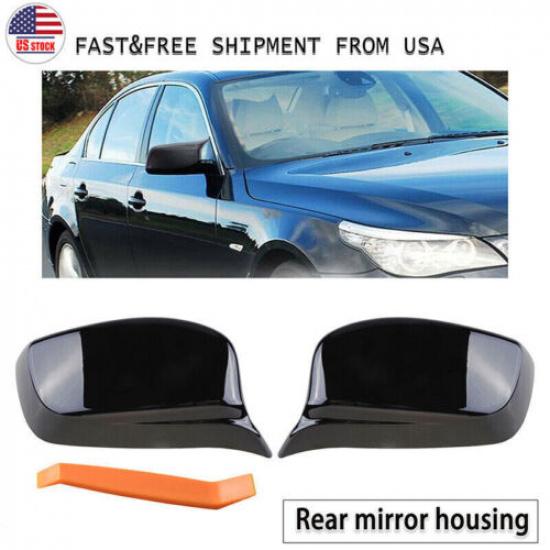 Pair M Sport Side Mirror Cover Caps Gloss Black For BMW E60 E61 2003-2008 BA