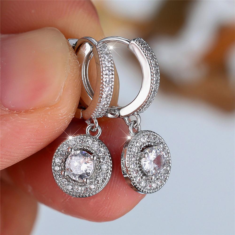 Luxus Damen Weiße Zirkonstein Creolen Damen Silberfarbe Hochzeits Schmuck Für Frauen