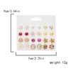 12Pairs Combination Earrings Set for Women Flower Heart Star Moon Sun Small Rhinestone Stud Earring Girl Party Jewelry Gift