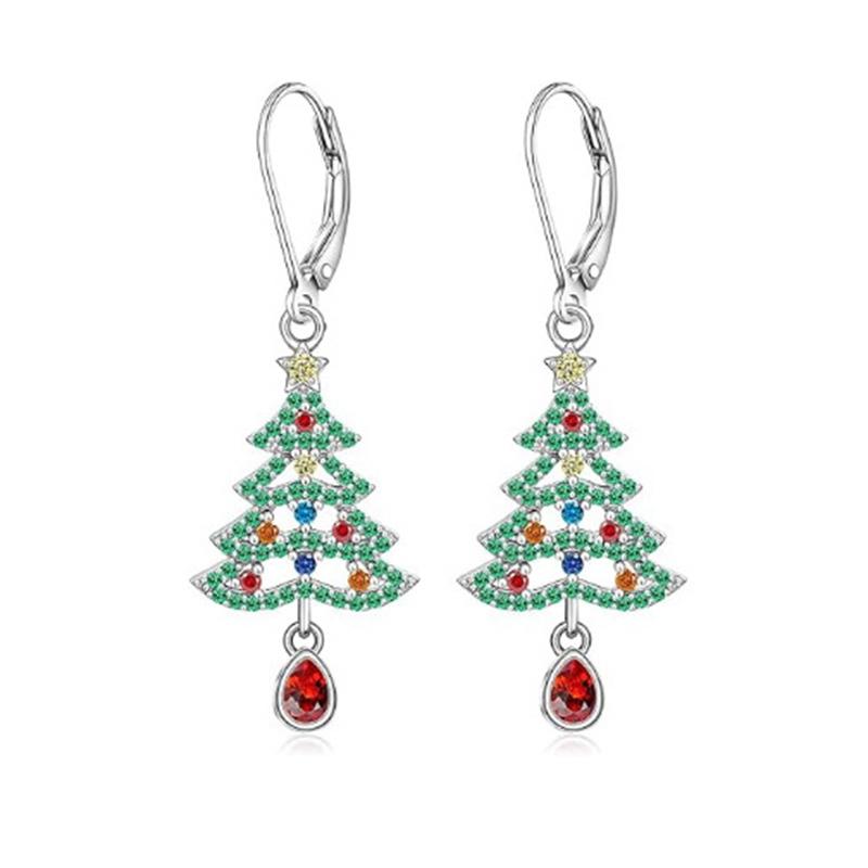 Exquisite Kleine Stern Weihnachtsbaum Creolen für Damen Hohl Glänzend Zirkon Weihnachtsbaum Ohrringe Freundschaftsparty Schmuck Geschenk