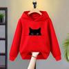 Kinder Kapuzenpullover Herbst Jacke Mädchen rosa Oberteile Hoodies Kind 3-12 Jahre Kleinkind Sweatshirt schwarze Katze Druck Freizeitkleidung
