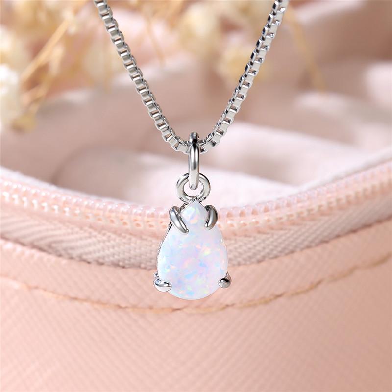 Süßer weiblicher weißer Feueropal-Stein Anhänger Halskette Vintage Silberfarbe Hochzeits Schmuck Geschenk für Frauen