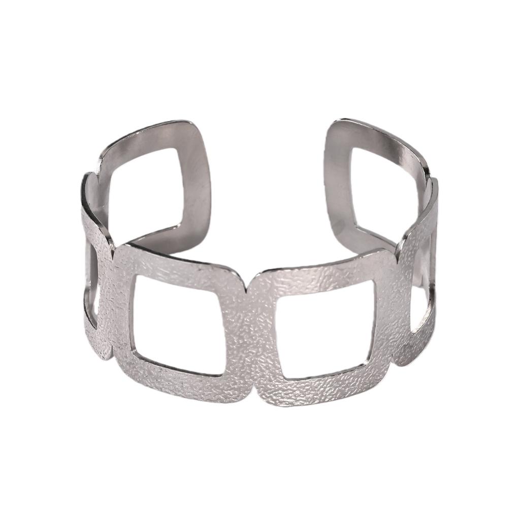 Modern Geometric Open Bangle for Women Stainless Steel Bangle Minimalist Silver Tone Adjustable Jewelry Gifts