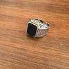 Vintage Faux-Onyx-Ringe für Herren Temperament Edelstahl Verstellbarer Offener Breiter Ring Silberfarben Punk-Schmuck Geschenke