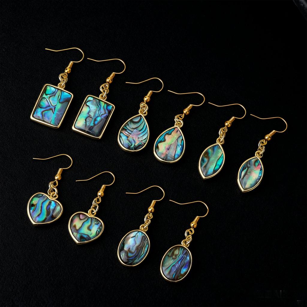 Natural Abalone Shell Square Teardrop Heart Shape Drop Earrings Classic for Women Girls New Trend Vacation Jewelry Daily Wear