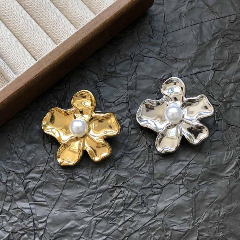 Edelstahl Perlenblumen Broschen für Damen Ladies Leichter Luxus Vielseitiger Anstecker Anzug Brustblumen Broschen Schmuck Zubehör