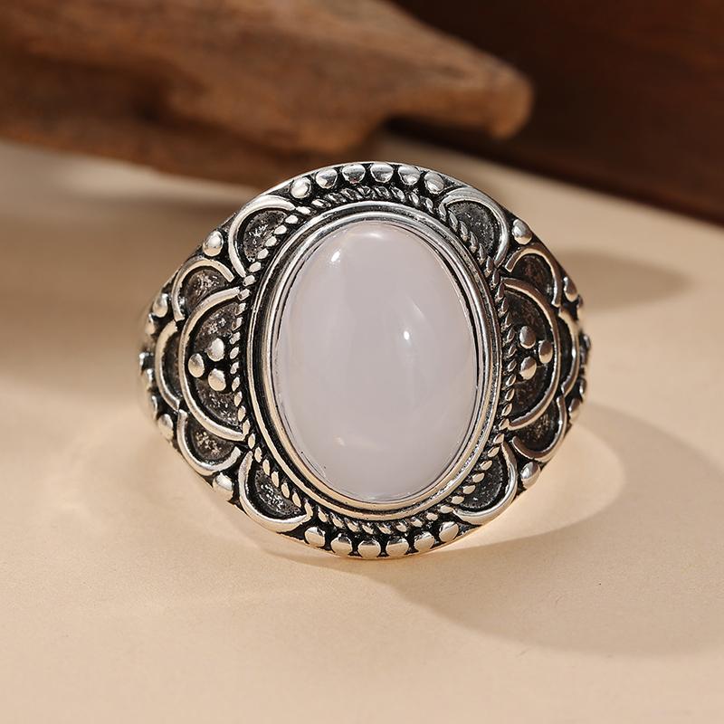 Boho Mondstein Ring - Regenbogen Mondstein Silberfarbener Ring Statement Ring - Ring Minimalistisch Handgemachter Schmuck Geschenk Bestseller