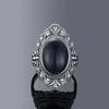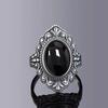 Vintage Silberring Oval Natürlicher Labradorit Ringe Fingerring Retro Schwarzer Onyx Feiner Schmuck Party Für Frauen Männer