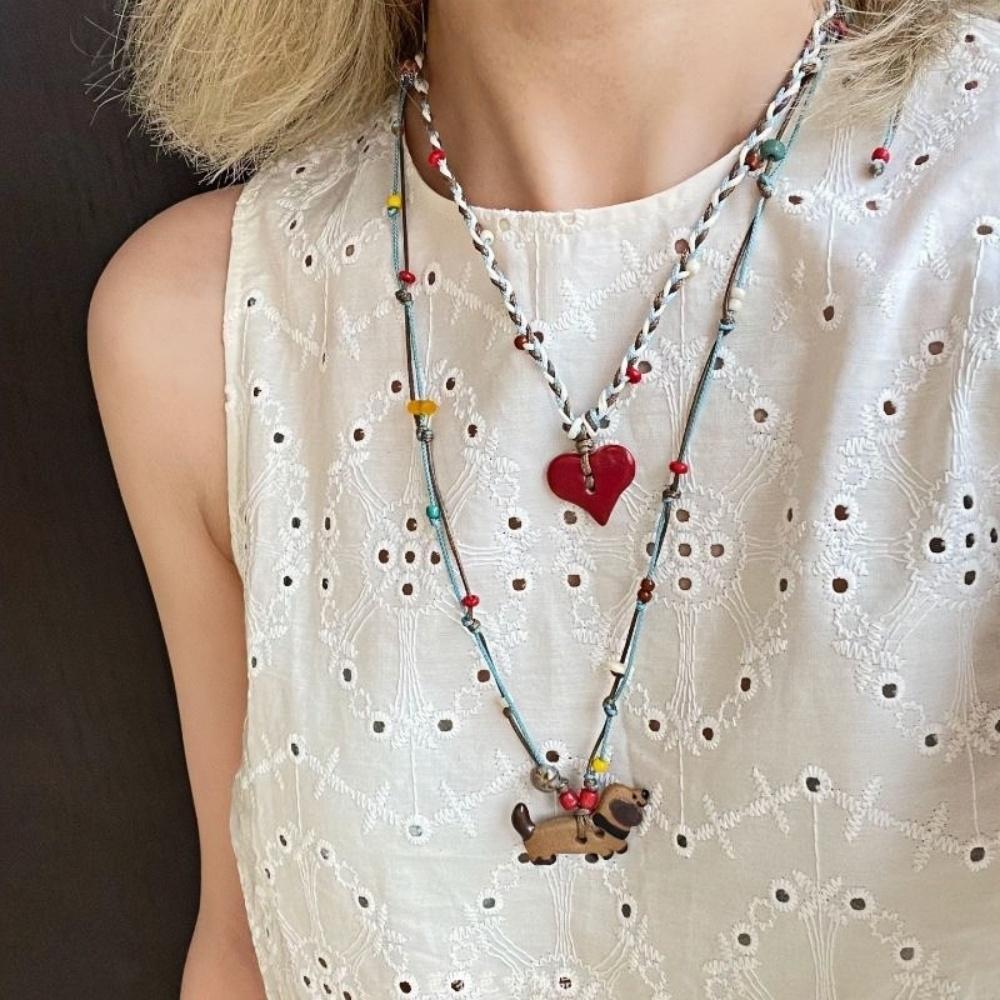 Süßer Liebes-Welpen-Anhänger Halskette Retro Geflochtene Kordel Naturstein Pullover Kette Halskette Für Frauen Schmuck Zubehör