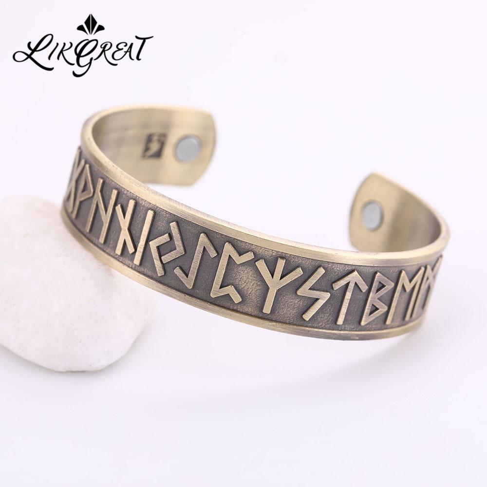LIKGREAT Vintage Nordic Rune Open Cuff Bracelet Magnetic Therapy Bangle Women Men Antique Copper Jewely Bijoux Father's Day Gift