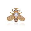Vintage Classic Imitation Pearl Bee Brooch For Women Men Light Luxury Full Rhinestone Insect Honeybee Pins Animal Badge Jewelry