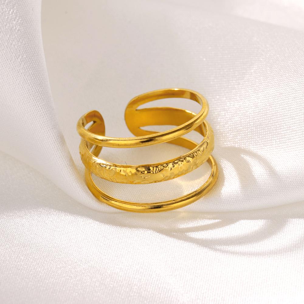 Vintage Textured Multi Layer Rings for Women Stainless Steel Gold Color Adjustable Wedding Ring Aesthetic Waterproof Jewelry