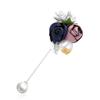 Romantic Cloth Art Fabric Rose Flower Long Needle Brooches For Women Men Double Floral Imitation Pearl Pins Suit Jewelry