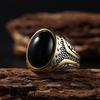 Naturstein-Serie für Männer Elliptischer Ring mit echtem Tigerauge-Stein 316L Edelstahl Männlich Vintage-Design Punk-Ring