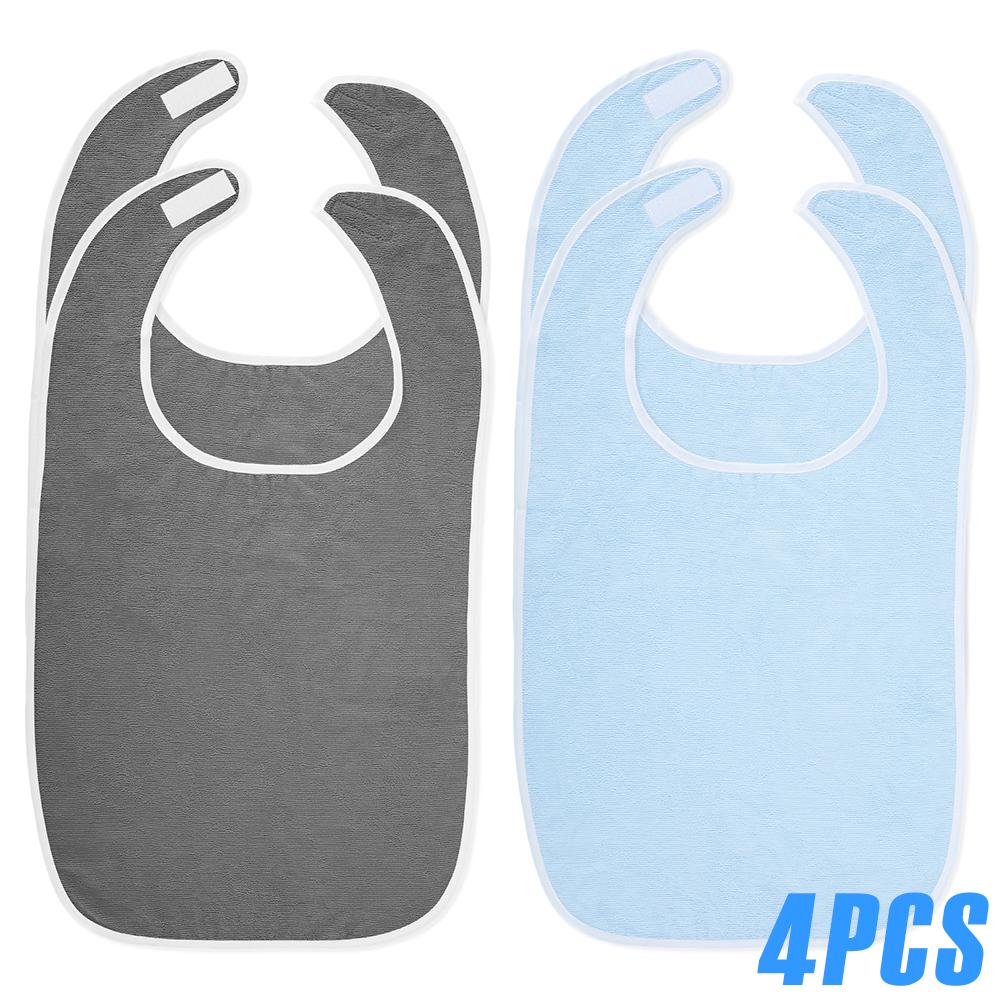 4 Stück Erwachsenen-Lätzchen Polyester Essens-Kleidungsschutz Verstellbare Erwachsene Fütterungslätzchen Senioren Fleckenresistent Diät-Tuch Blau/Grau