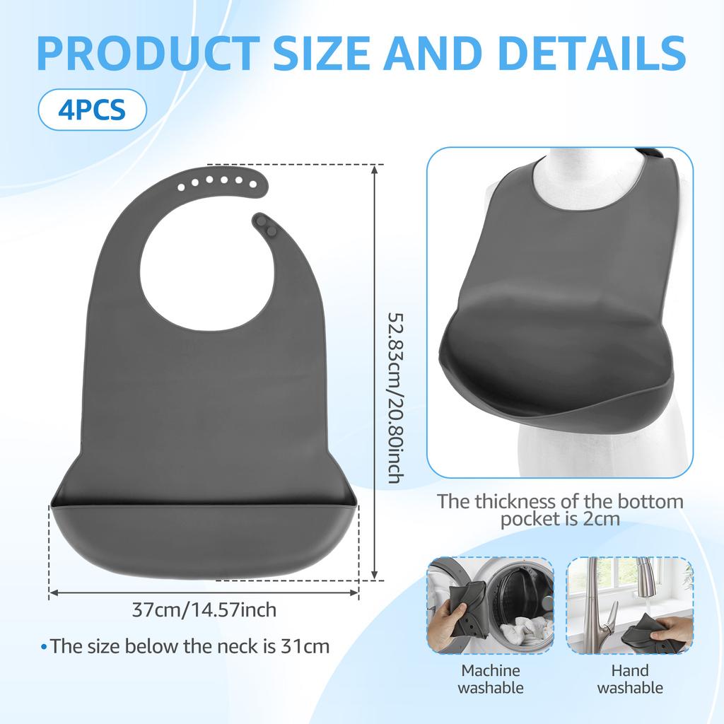 4 Stück Silikon Erwachsenen Lätzchen Verstellbare Wasserdichte Erwachsenen Fütterungslätzchen mit Krümelfänger Kleidungsschützer für ältere Frauen Männer