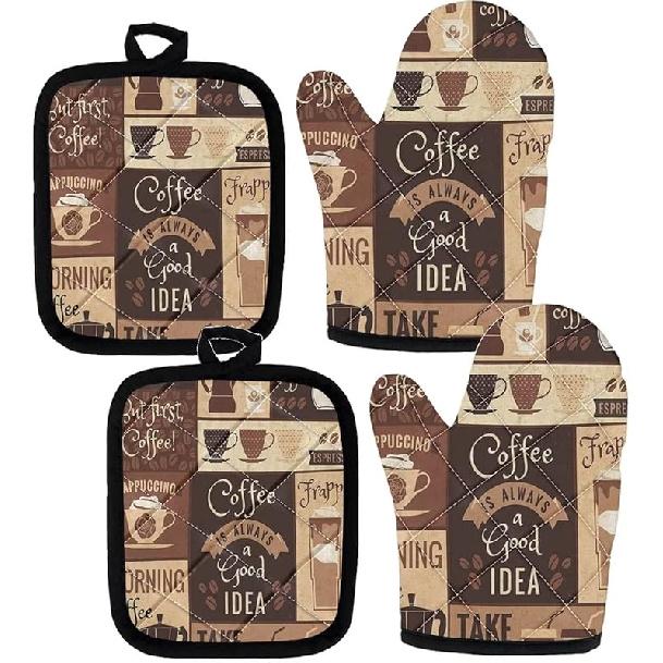UNICEU Sunflower Cow Print Oven Mitts and Pot Holders Set of 4 Heat Resistant Kitchen Oven Mitts Gloves and Potholders for Baking Cooking Grilling
