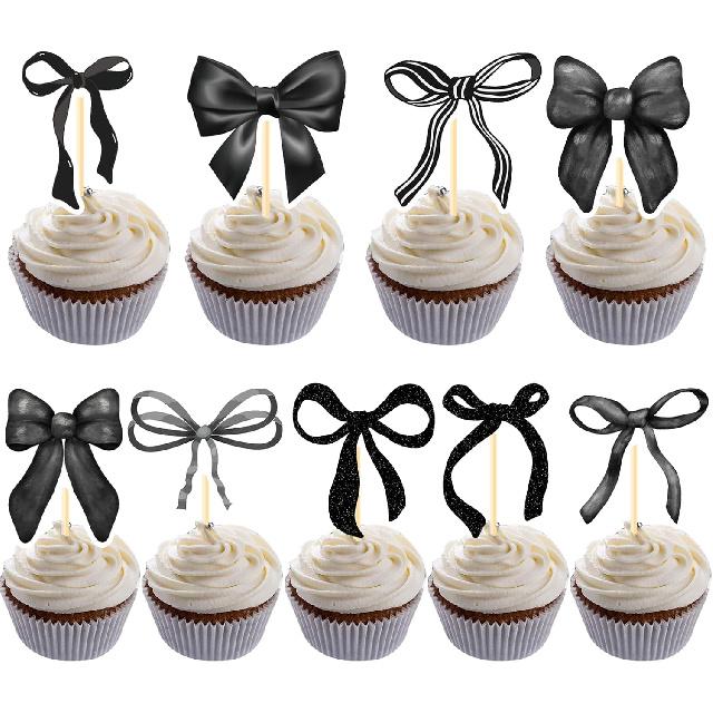 Coquete Birthday Party Decorations - 36PCS Black Bow Cupcake Toppers Decoration Bow Party Baby Shower Decor Supplies Bow Theme Bridal Shower