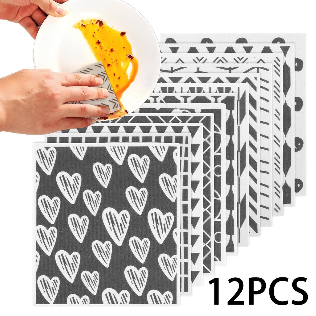 Vielfältiges Set schwedischer Spültücher: Enthält fünf verschiedene Arten von wiederverwendbaren schwedischen Spültüchern in der Größe 17×19,5×0,2 cm(6,7×7,7×0,08 Zoll) Verleihen Sie Ihrer Küche Charme