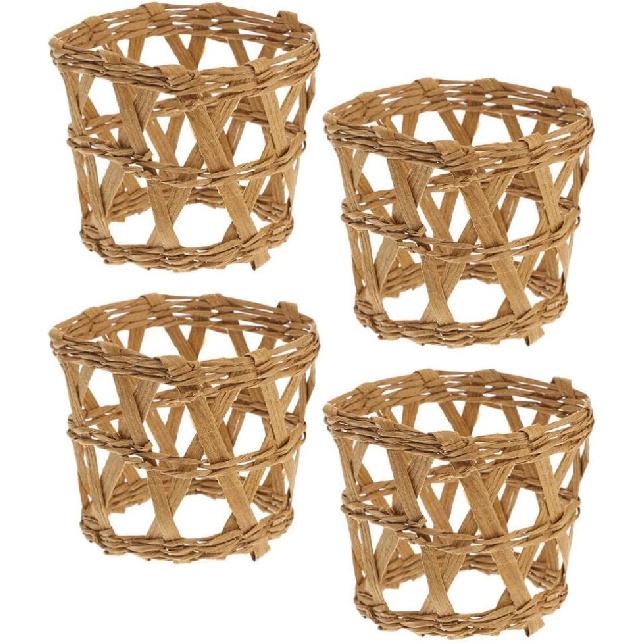 Happyyami 4pcs Wicker Woven Cup Holder Rattan Drink Glass Cup Holder Bottle Cover Rattan Vase Cover Sleeve Chic Rustic Table Centerpiece Decor for