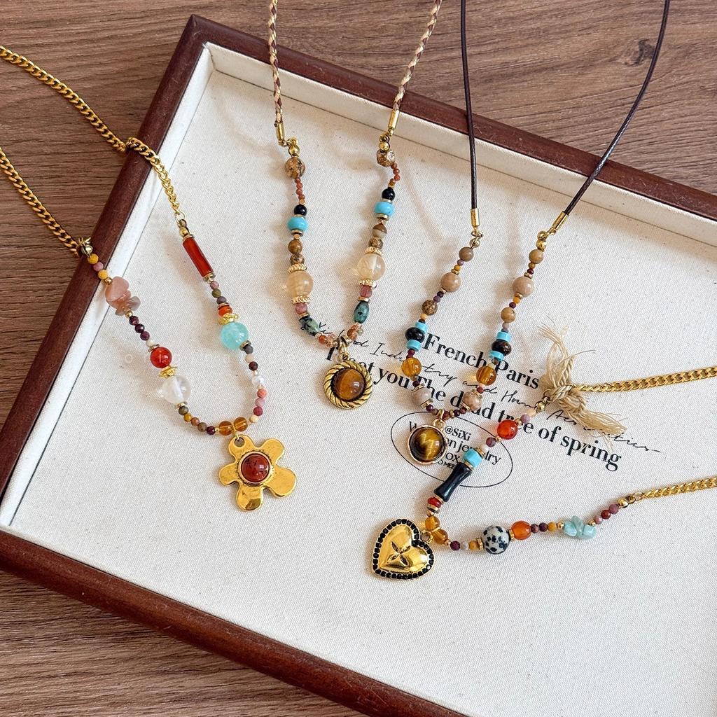 Maillard Tiger's Eye Stone Pendant Necklace Women's Light Luxury Temperament Beaded Clavicle Chain Niche