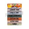 Inspirierende Phrasen Metallschild-10 Goldene Regeln-7 Lebensregeln-Erfolgsnotizen-Englisches Poster für Firmabüro Wanddeko