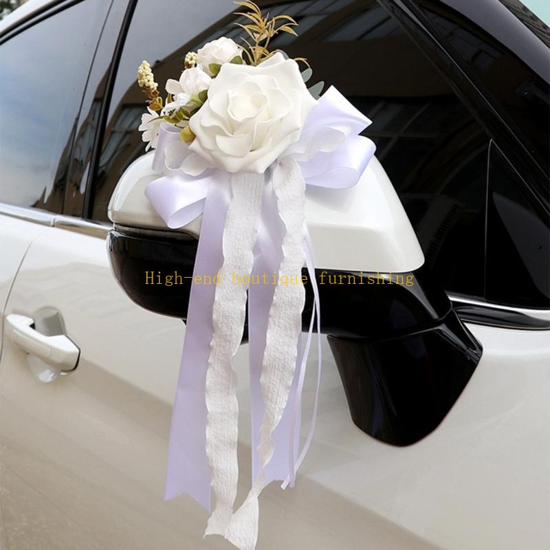 Set mit 4 eleganten Blumen-Schleifen-Anhängern für Hochzeitsauto-Gläser und Türgriffe
