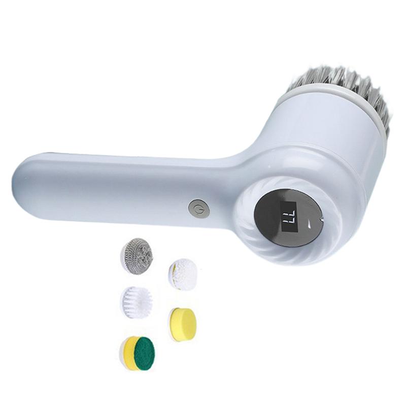 Good-For Kitchen Sink Bathroom Shower Tile Dish Scrubber Brush Electric Scrubber With 5 Brush Heads WHITE